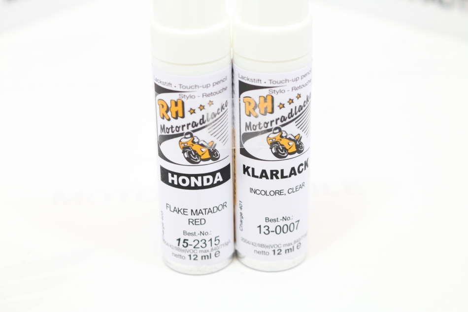 Motorrad Lackstift Set in der Farbe: "Flake Matador Red" mit Klarlack. Für z.B. die Honda CB350 Four Modelle.